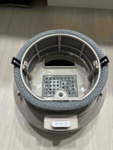 こんな感じです。フィルターが円筒形に巻かれていてポンプがこのフィルターに水をかける。フィルターが下のタンクに浸かりっぱなしにはならないので、かびにくいし、一応、水も清浄フィルターを通ることで除菌はされるのだと思う。ミネラルの付着はこれからチェックしていくことになると思う。フィルターは、横についている「耳」を引っ張って外す。中央の灰色の部品がウォーターリフレッシャー。BlueAirに文句があるのはこれ。なんと別売品なのだ。せめて、最初の1個くらいはつけてくれよと思う。ダイキンなどでは銀イオンで殺菌するちっさい部品に相当。アプリで見ると、ウォーターリフレッシャーの効力(?)の数値がどんどん下がっていく。こりゃ、1シーズン2セットは使うことになるのかしらん。ちょっと半端ないランニングコストになるかも。